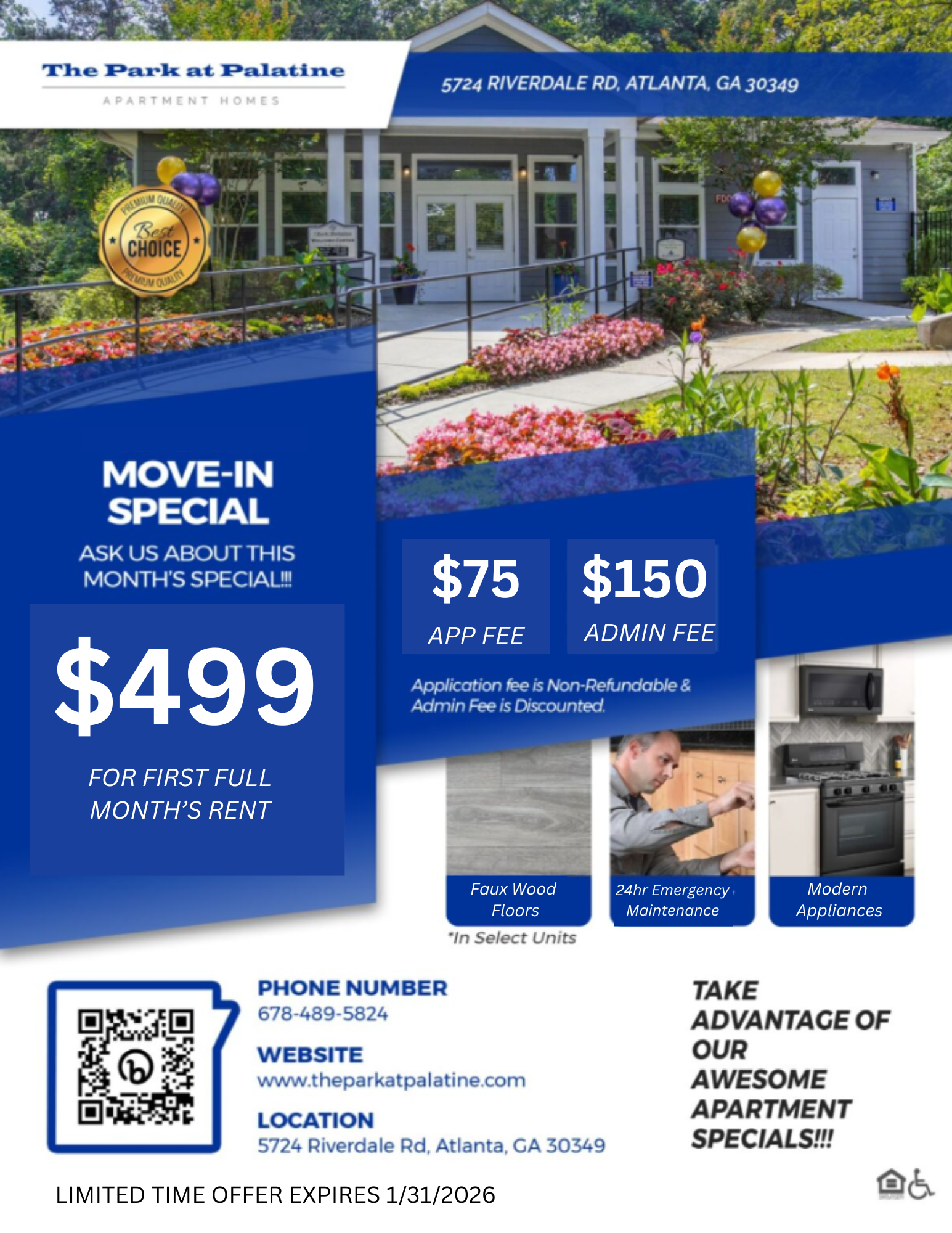 🎉 New Year, New Beginnings, New Specials! 🏡✨ Our limited-time January Move-In Special is the perfect way to start fresh and settle into a place you’ll love.❄️💙 First Full Month’s Rent is just $499 📞 Stop by or give us a call today — new-year savings like these won’t stick around for long! 🎆🔑